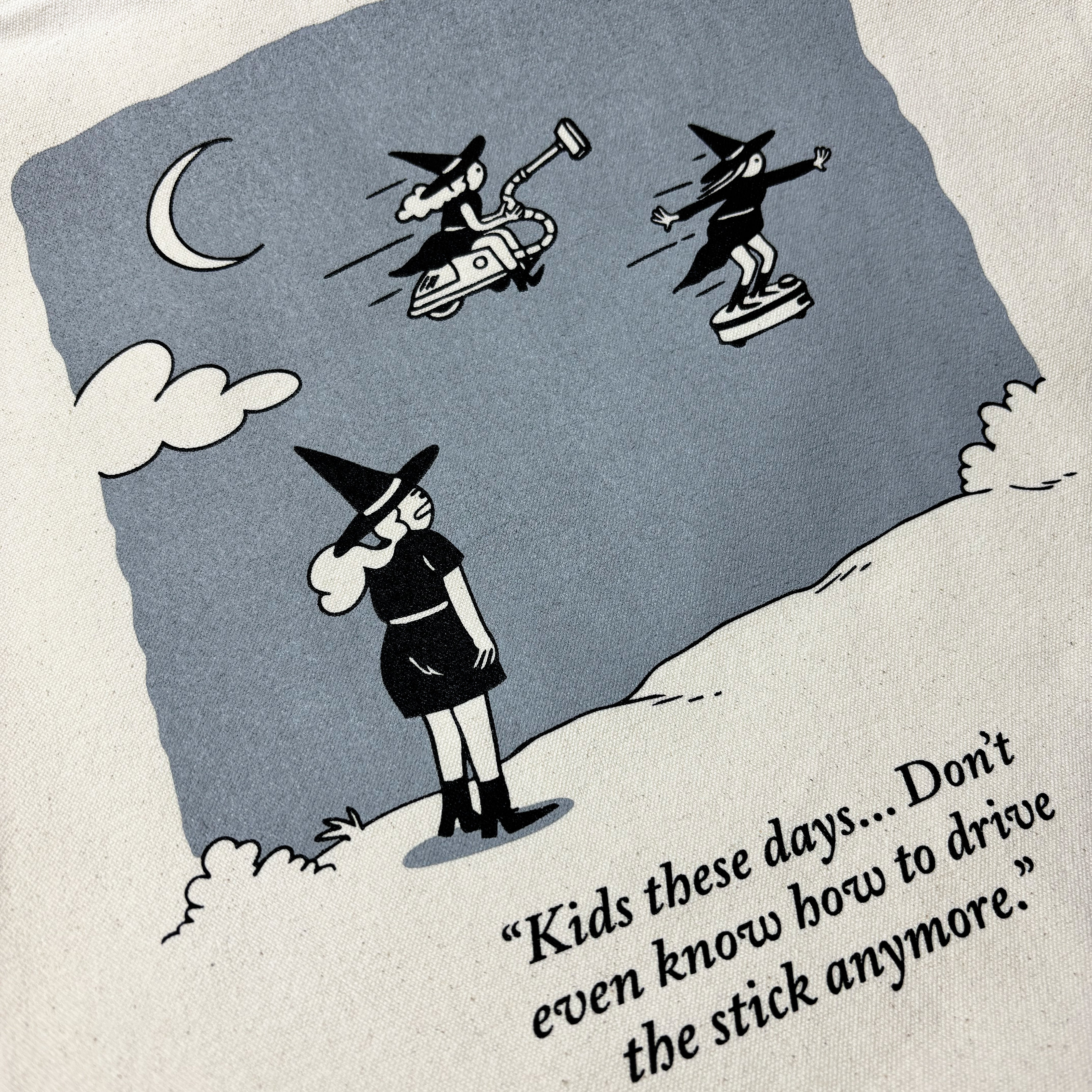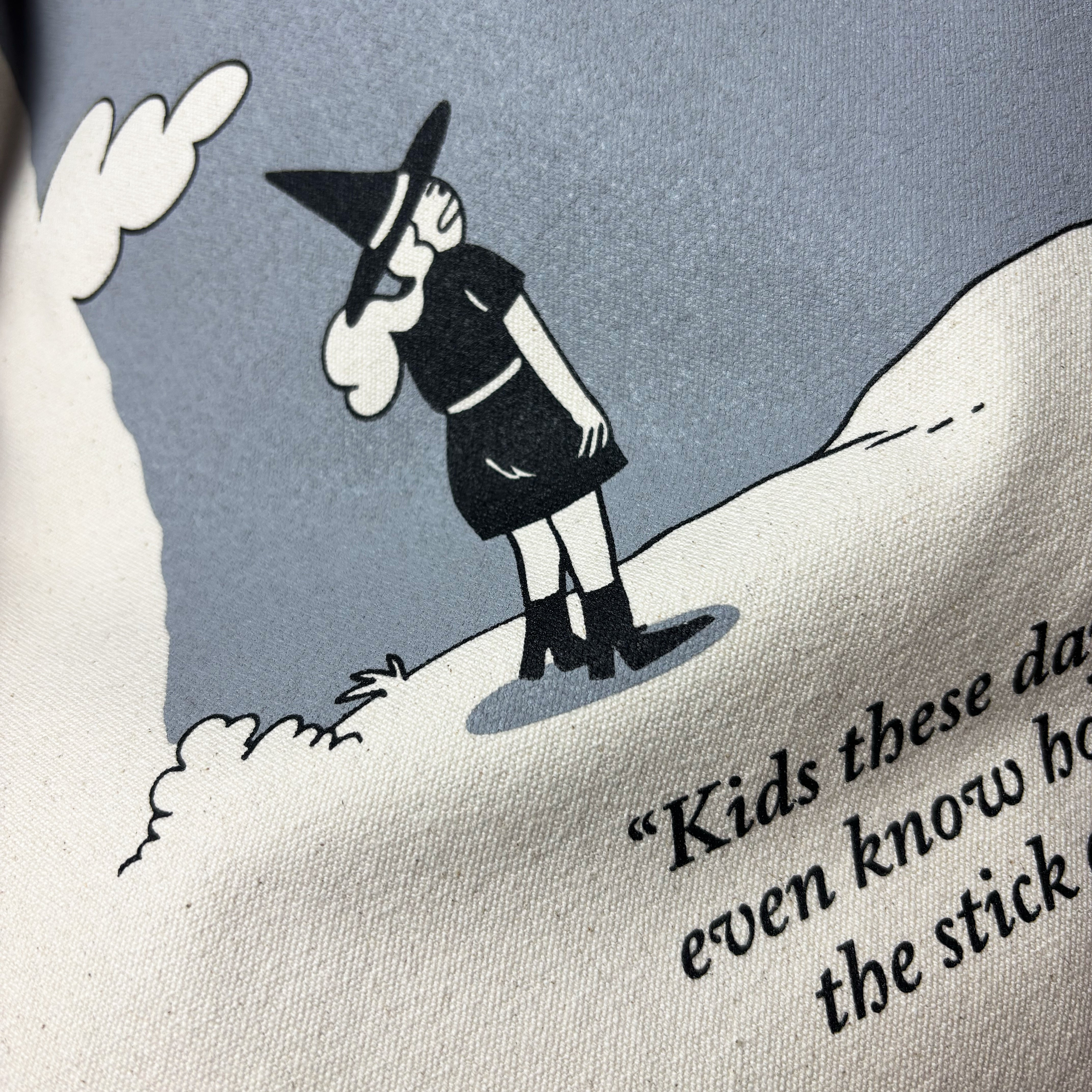 This lifesaving sturdy shopper bag is made from EarthAware certified  100% organic cotton. The cartoon is a handmade silkscreen print, produced locally. Its classic smooth beige linen, with the motif in a crisp, vibrant black and grey match just about anything, so there's no excuse to let your inner curmudgeon shine. Its chic contrast handles in black are extra tough, sown in with a box stitch. With a 10-liter capacity and dimensions of 38 × 42 cm, there's enough room to transport all kinds of forbidden smut!