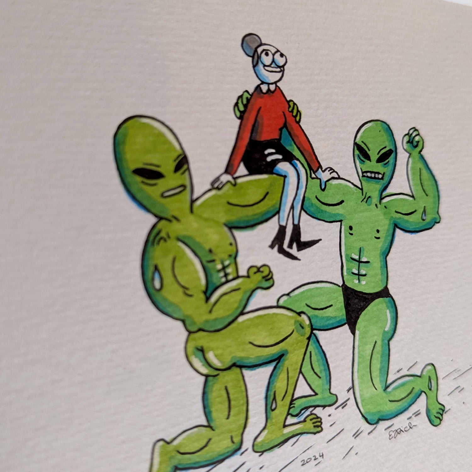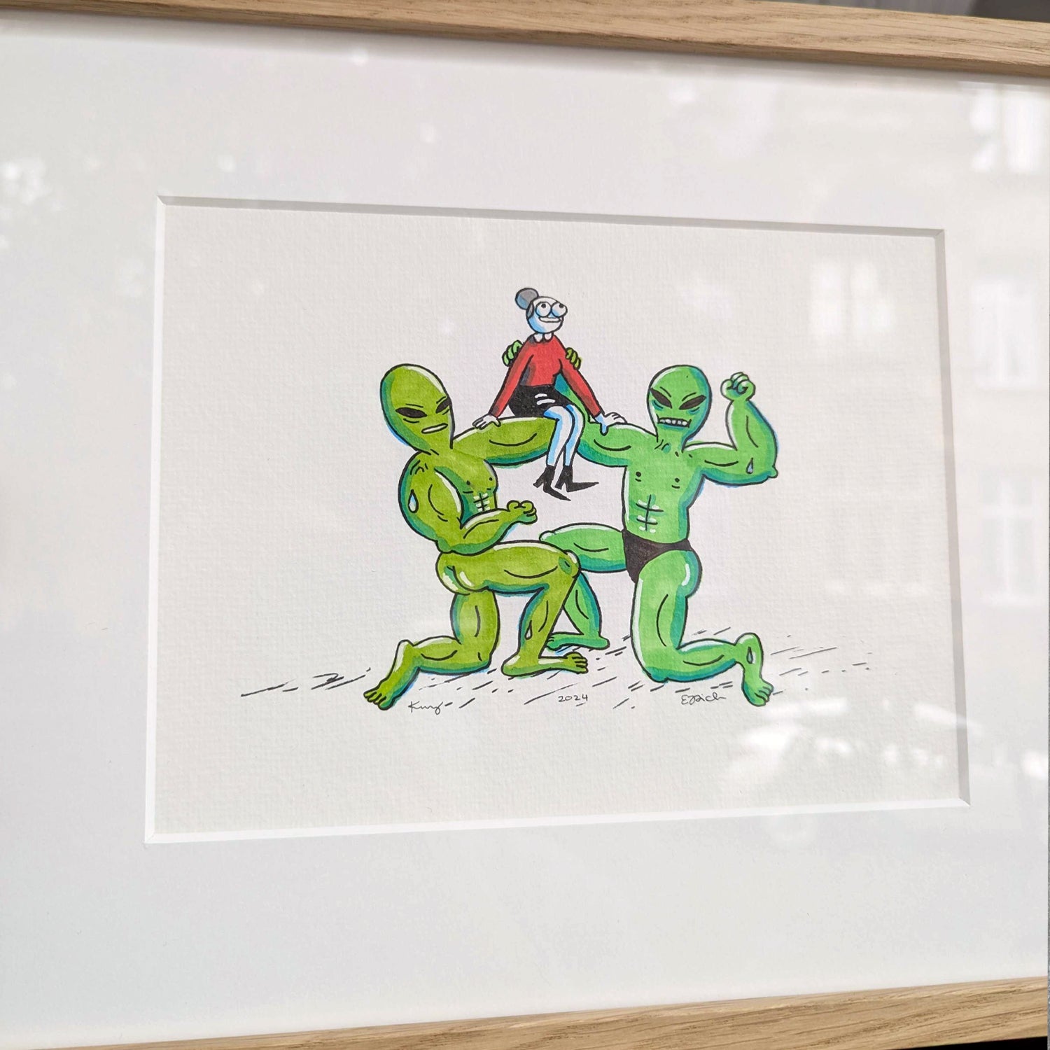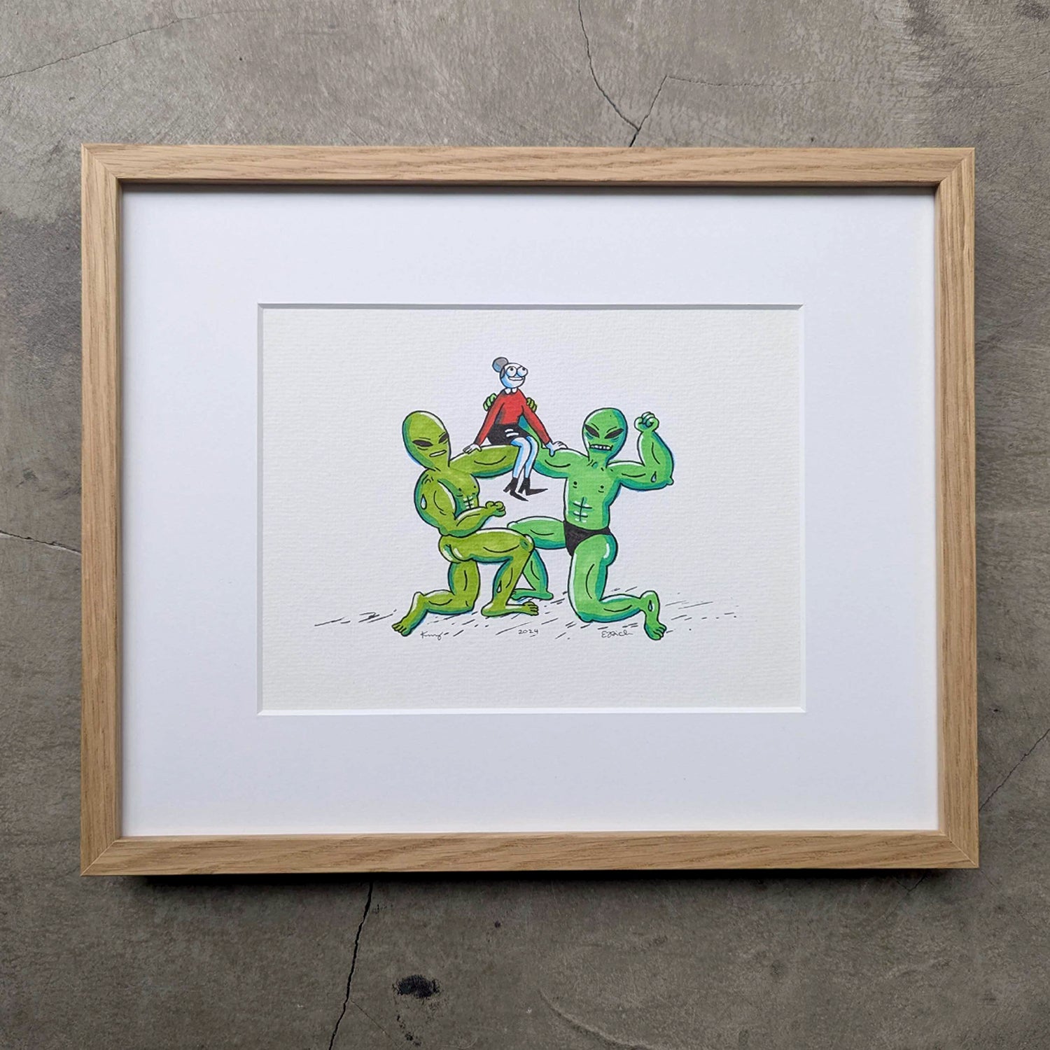 Buff Aliens Thirsty Scientist Dream Original Artwork Framed