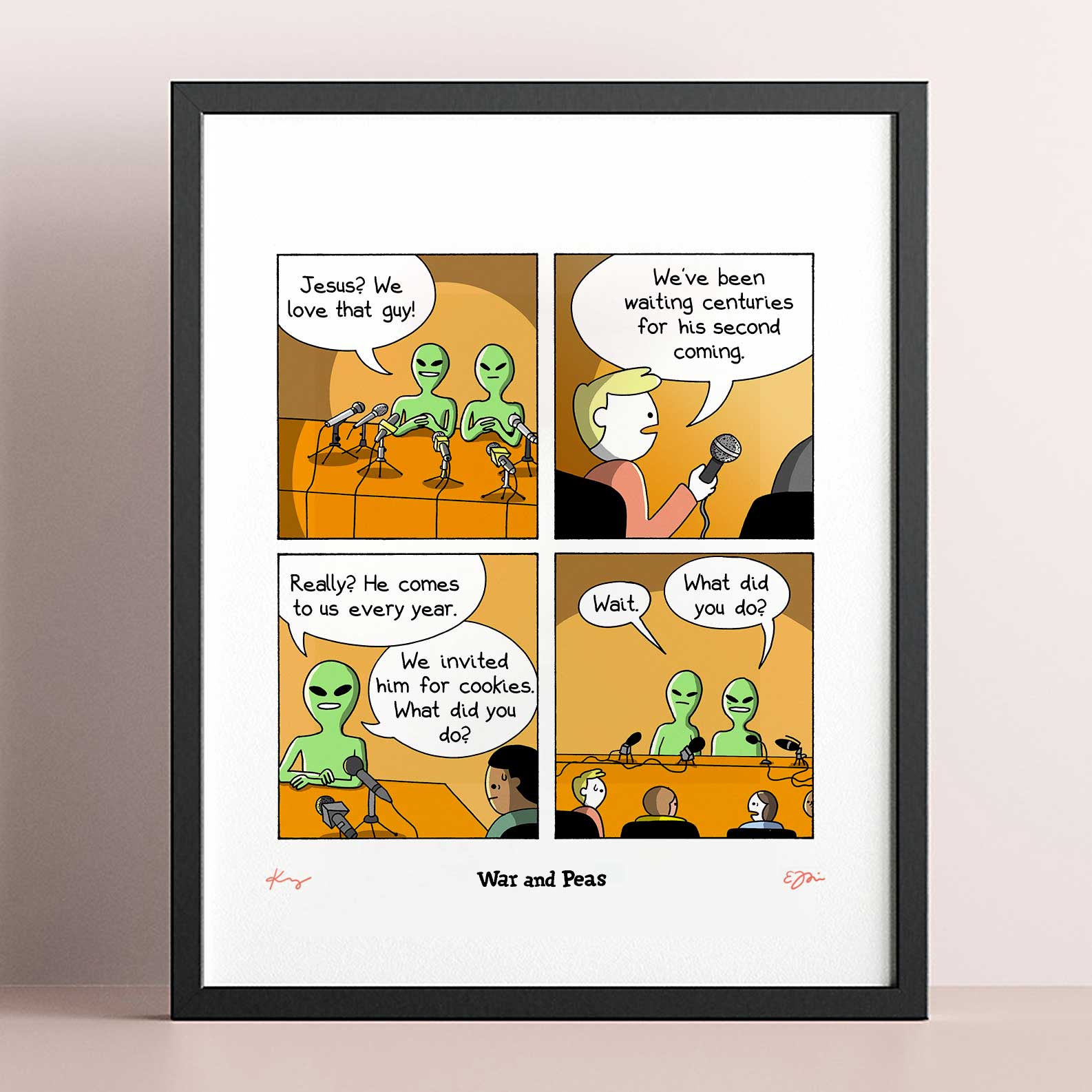 We've handpicked the very best of War and Peas and teamed up with our local print studio to produce this limited comic art collection.