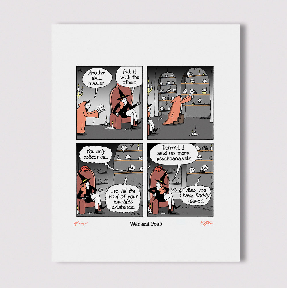 We've handpicked the very best of War and Peas and teamed up with our local print studio to produce this limited comic art collection.