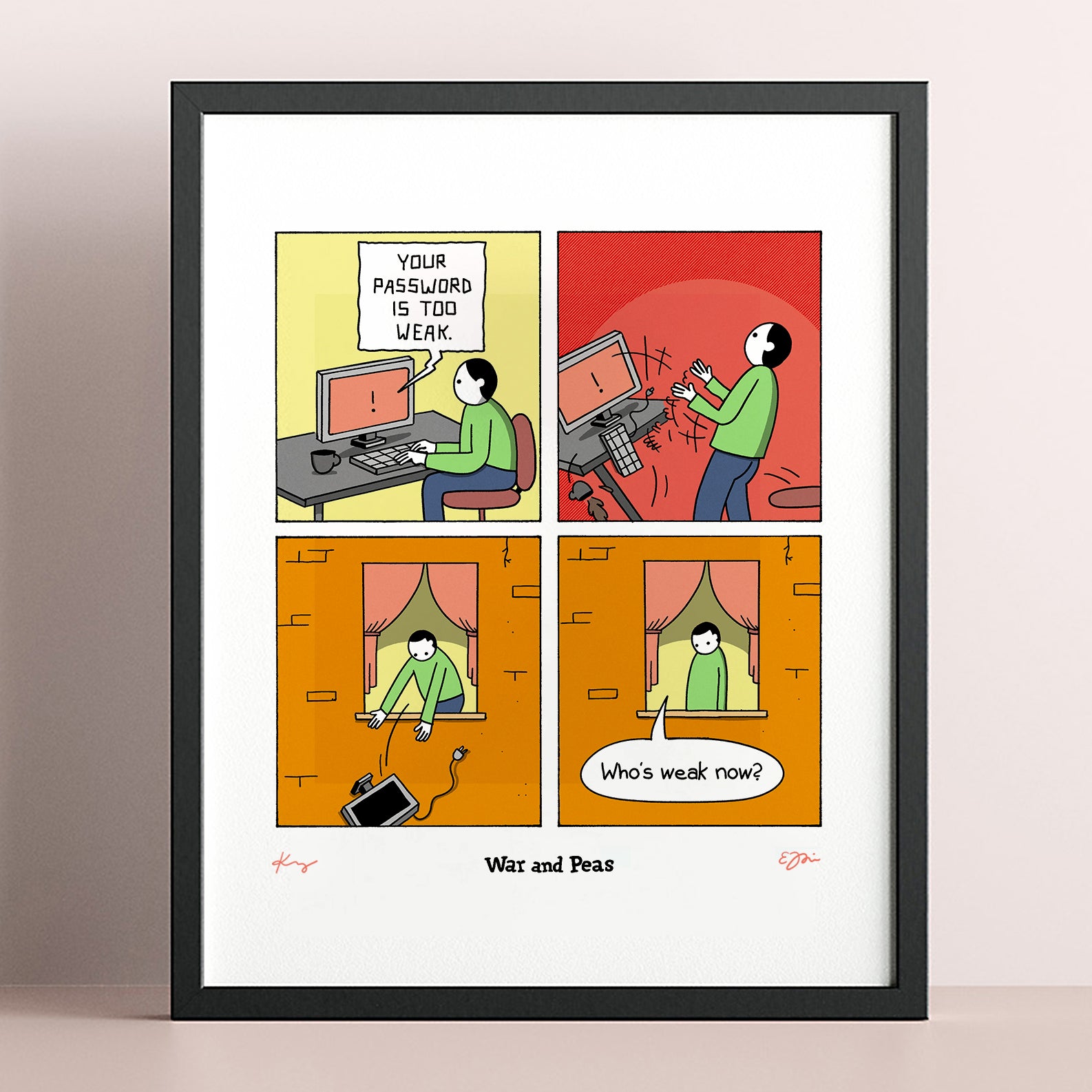 We use frames by HALBE – Germany's leading manufacturer of premium magnetic frames, trusted by galleries and collectors worldwide. These are precision-engineered interchangeable frames with a magnetic closure system that makes handling an absolute pleasure. So if you ever get tired of a comic, you can simply order a new print and change it yourself: