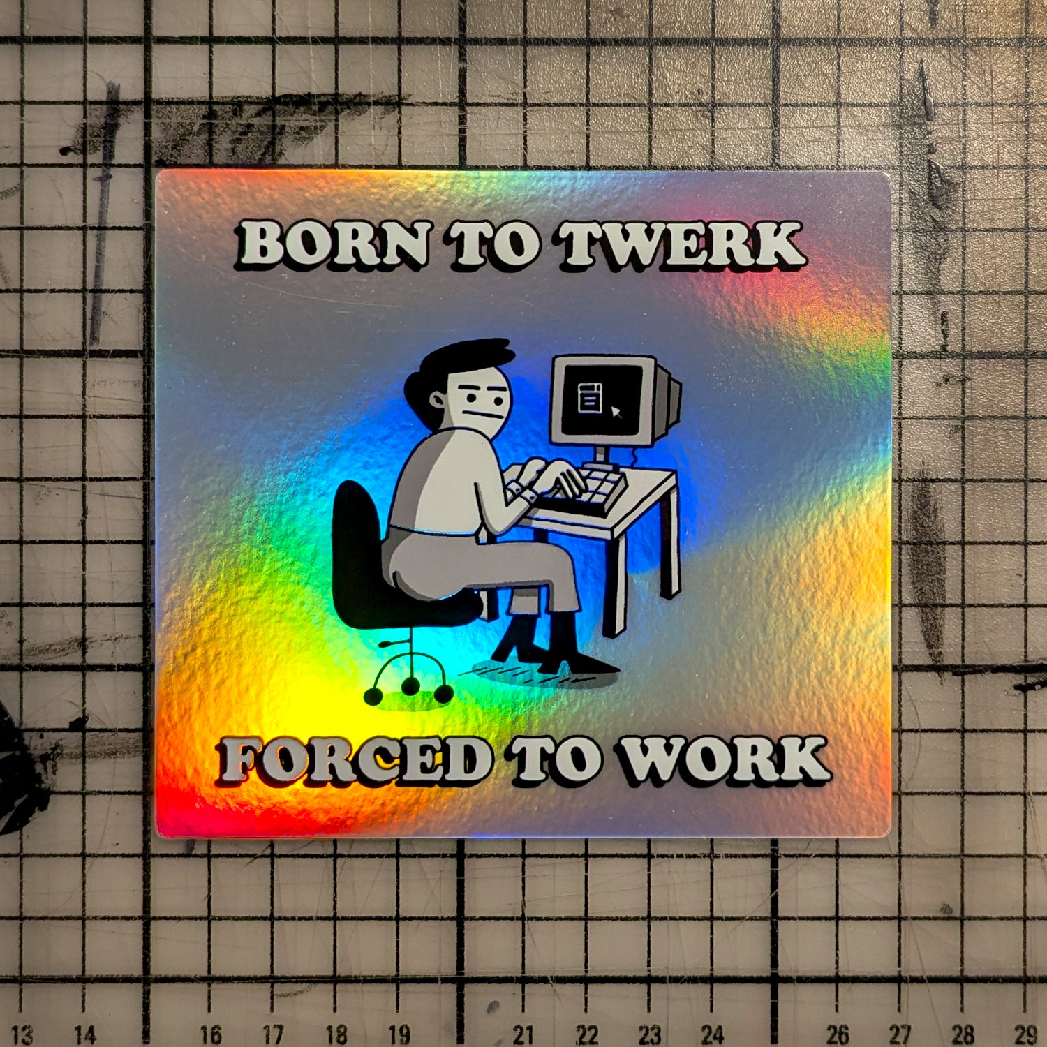 Let’s face it: You were put on this earth to shake what your mama gave you, but instead, you’re staring at a spreadsheet, wondering how many more years until retirement. We understand your pain and distilled it into this glittering, holographic sticker that’s equal parts tragic and iconic.
